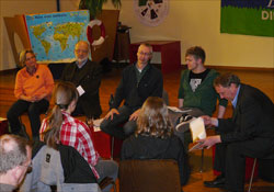 Ratsmitglied Eckhard Kneisel übernahm die Moderation und konnte als prominentesten Gast Reiner Priggen, langjähriges Mitglied des Landtags und energie- und wirtschaftspolitischer Sprecher der Grünen Landtagsfraktion, begrüßen. Dieser machte deutlich, dass für ihn vor allem die komplette Umstellung der Stromerzeugung auf regenerative Energien und die Förderung des Passivhausbaus Vorrang hat: "In der Industrie gibt es prozessbedingte Emissionen, die nicht reduzierbar sind, andere Bereiche müssen dafür aber komplett emissionsfrei gemacht werden", sagte er. Hier sei auch ein Konsens mit CDU und SPD möglich. Die Übergangslösung dürften aber keine Kohlekraftwerke, sondern dezentrale Gaskraftwerke mit Kraft-Wärme-Kopplung sein, so Priggen weiter. Man wolle Rekommunalisierung und mehr Marktteilnehmer, klare Position bezog er auch zum Thema Mindestlohn: "Es muss einen Mindestlohn geben", sagte Priggen und sah sich darin mit NRW-Arbeitsminister Laumann, CDU, im Einklang. Zur Schulpolitik forderte Priggen: "Die Diskriminierung der Gesamtschule muss aufhören."