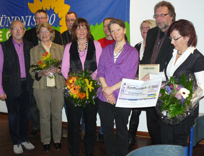 Ich möchte nun die Mitglieder der Selbsthilfegruppe bitten nach vorne zu kommen und die Funzel , den Geldpreis und die Urkunde für überdurchschnittliches soziales Engagement entgegenzunehmen.