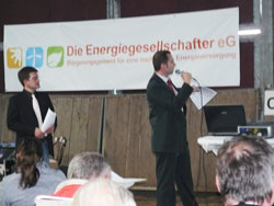 Mit 64 Gründungsmitgliedern geht die Genossenschaft „Die Energiegesellschafter" an den Start. Nach einer zähen Gründungsversammlung liegen bereits so viele Meldungen und Zusagen für den Kauf von Anteilen vor, dass das erste Projekt im Sommer an den Start gehen kann.