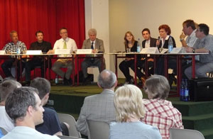 Einen schweren Stand hatten in diesem Punkt Bürgermeister Hans Wilhelm Stodollik (SPD) und Annette Droege-Middel(CDU), die die Entscheidung ihrer Fraktionen in diesen Punkten noch einmal rechtfertigten. Sie verwiesen auch auf die nicht städtischen Angebote z.B. der Kirche und auf die Angebote in der Region, z.B. in Dortmund. Außerdem umfasse die städtische Jugendarbeit mehr als Angebote für Jugendliche, so Stodollick und nannte als Beispiel die Betreuung für unter Dreijährige und die Arbeit des Übergangsmanagements Schule-Beruf. Dr. Norbert Katte kündigte an, dass sich die FDP für einen Jugendrat stark machen wolle, der auch Stimmrecht im Rat haben soll. Die Linken, verteten durch den Lüner Spitzenkandidaten Eckhard Mating, sehen ihren Schwerpunkt in der Jugendarbeit in der Schaffung von Ausbildungsplätzen. Michael Folchmann wies auf die Bemühungen der Unabhägigen Wählergemeinschaft hin, einen privaten Jugendtreff zu installieren.